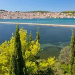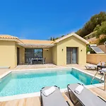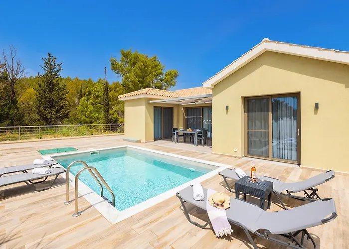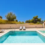 トラペザキ・ビーチほんの数分に位置するベッドルーム2室のVilla Gerasmia トラペザキは、海の景色を望むテラスがあります。 プールを提供するヴィラは、ルーダス ビーチから歩いて25分の場所にあります。